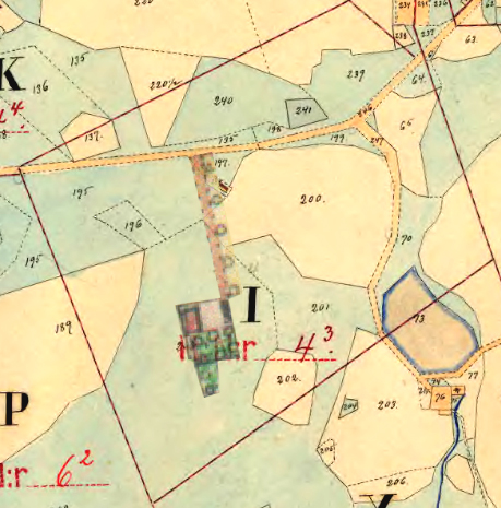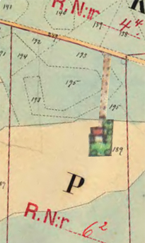 Åboen Per Olsson (Skatte Rusthåll).Har gården i sämre stånd, utan hage och plantering. Husen, byggda efter 1768, ligger på äga nr 189. (25 Binningar, värde 174 Rd, 7 Rd/binning). Har utflyttningsskyldighet till ägorna nedan. (Huset 1916 inritat). Ägor: Åker nr 189, 207, 211. Äng nr 186, 207, 208. Odlingsmark nr 190-195. |