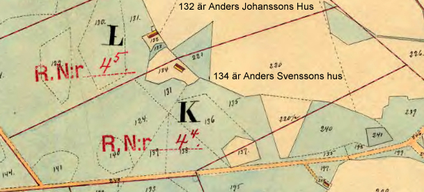 (Kallas också Andreas). Har stugulängan med övriga uthusen i dåligt stånd, utan hage och plantering. Husen, byggda före 1768, flyttat till äga nr 132. Bjärröd Nr 6 gamla kartan 1768? Har utflyttningsskyldighet till ägorna nedan. Här saknas en värdering på flytten. Ägor: Åker nr 134, 219, 220, 225. Äng nr 139, 221, 222. Odlingsmark nr 124, 129, 130,131. Karta se under punkt 11, Anders Svensson ovan. |