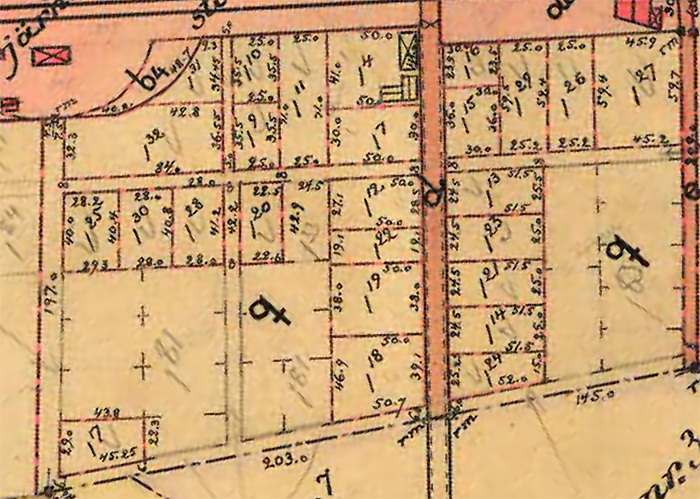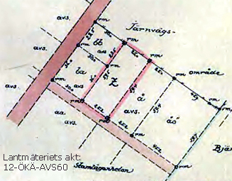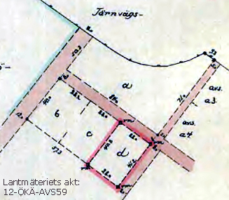 Denna tomt 66 m längs vägen har senare delats upp i tre tomter, den närmast