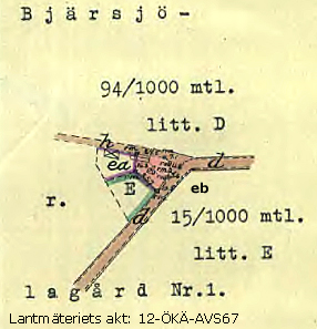 7. Bjärsjölagård 165 (b = köpt av Jöns Sköld Rönås 1925-06-05. Säljare V.Vickhoff.) |