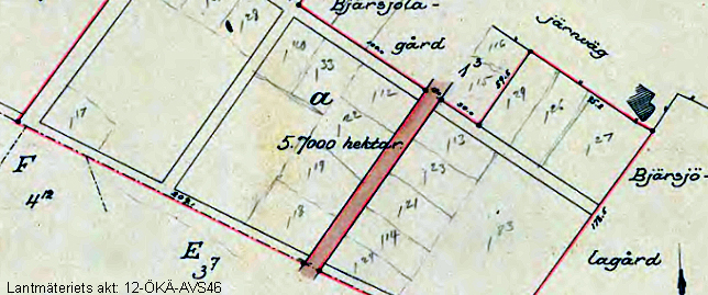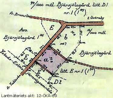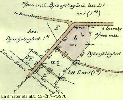 5. Bjärsjölagård 171 (a = köpt av Fröken Martha Ekelund 1926-11-11. Säljare Olof Björck Vollsjö.) |