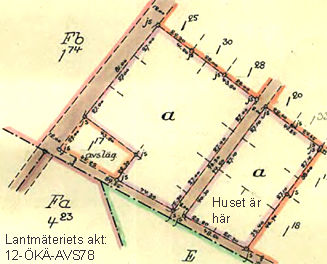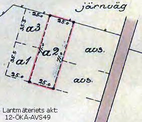 ![]() Tomten köpt i oktober 1921. Lagfart datum ovan. Huset från ett vykort från 1925 till 1928. Huset bakom är 122. |