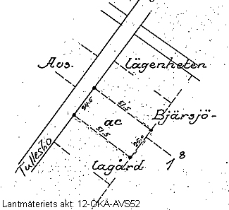 ocgden tredje 18,25 m längs vägen. Alla tre ca 51,5 m åt andra hållet.Indelningen blev: Bjärsjölagård 168 Bjärsjölagård 1xx Bjärsjölagård 172 |