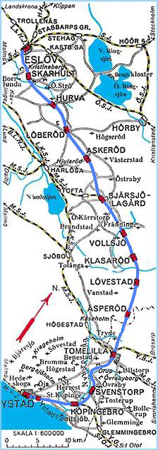 Bansträckning Ystad - Eslöv inklusive bilder på stationerna