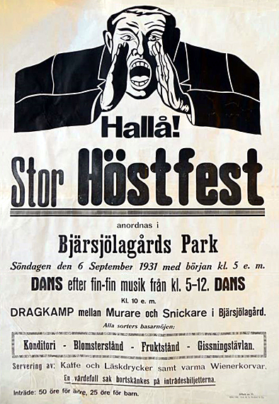 Affisch om en fest i Parken Bjärsjölagård Den enda som hittils hittats. |
