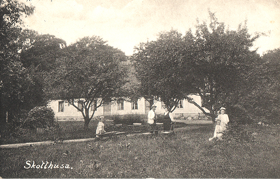 Skartoftas nya små- och folkskola, 1913, byggd 1909. Gamla skolan, korsvirkeshuset i